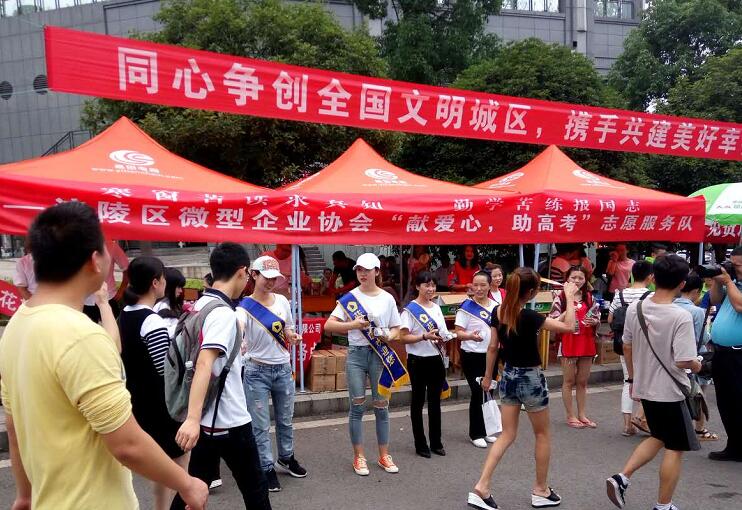 为增强区协会的社会影响力,大力提升微企形象,向社会献爱心,为创建全国文明城区添砖加瓦。区微型企业协会于6月7日至8日在全国高考涪陵五中考点开展“献爱心 助高考”公益活动,协会会长、秘书长、16名副会长和协会办公室工作人员参加了此次活动。