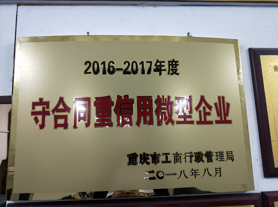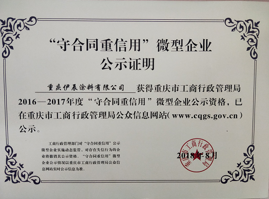 重庆伊辰涂料有限公司荣获“守合同重信用”微型企业