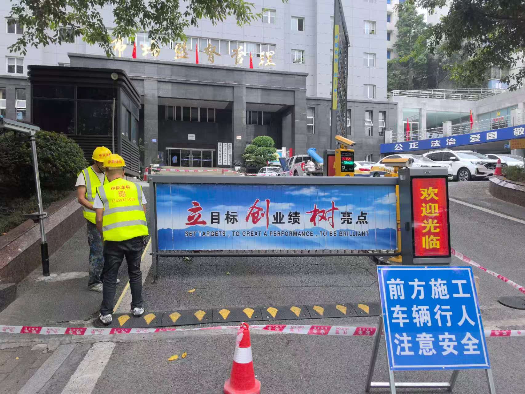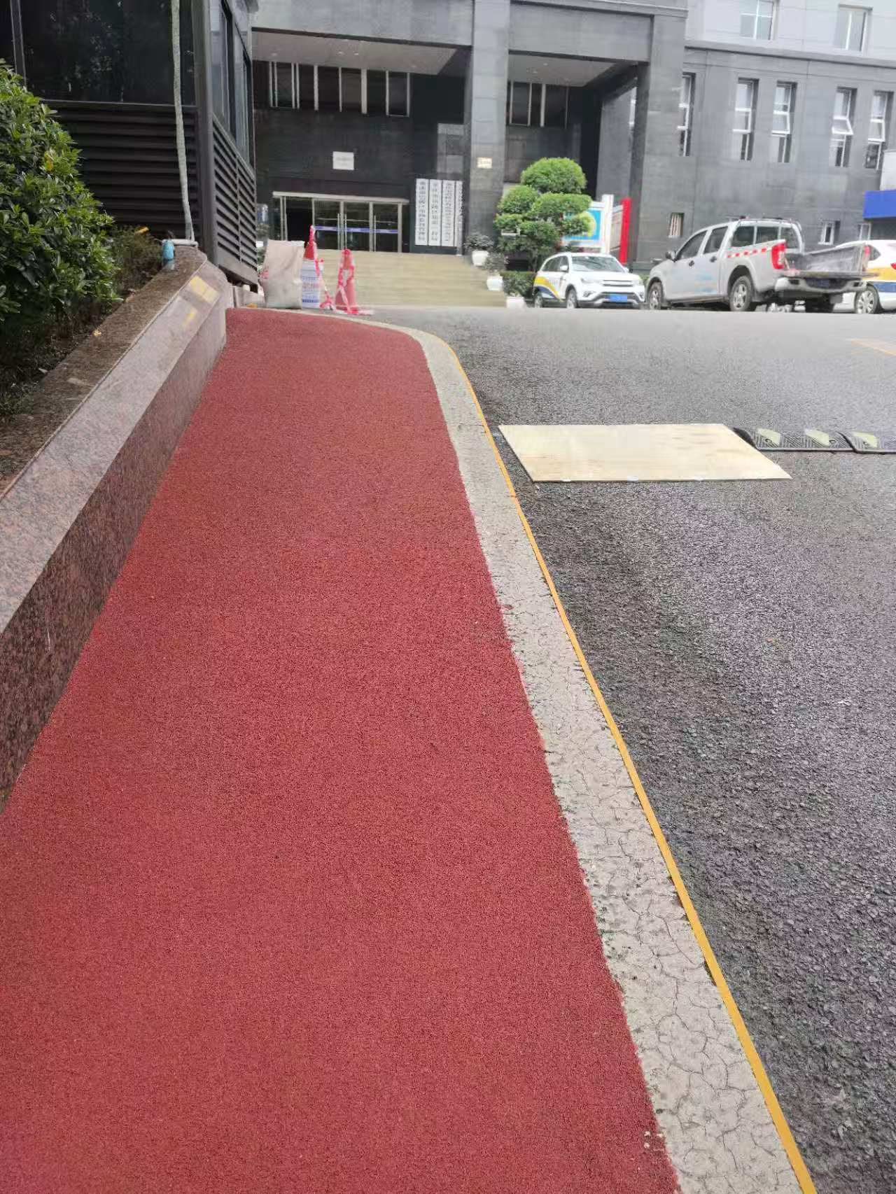 重庆伊辰涂料有限公司承接涪陵区市场监督管理局机关大楼车行道旁边人行道防滑地坪。