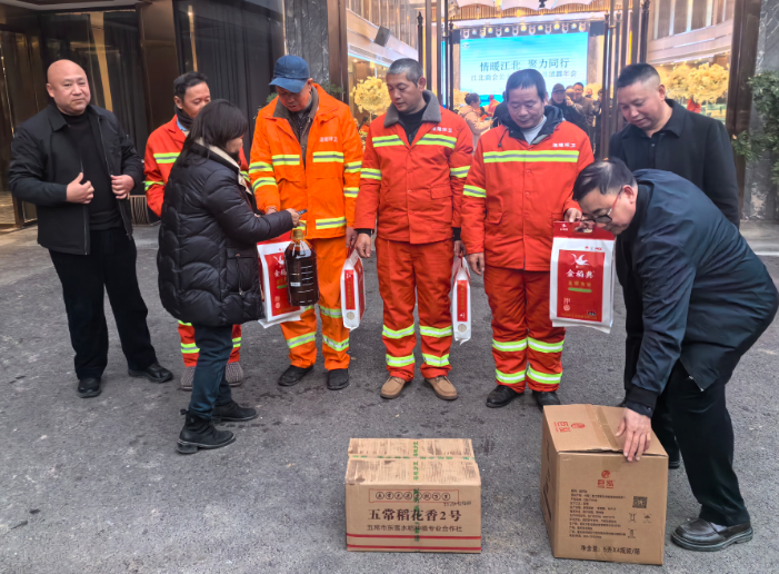 2026年1月16日 重庆伊辰涂料有限公司总经理 冉大武 在风琴半岛 参加涪陵区江北办事处 江北商会年终 总结会 并慰问环卫工人。